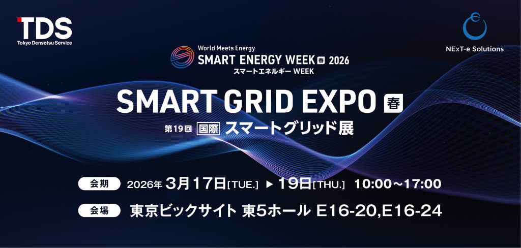 2026年3月17日(火)~3月19日(木)に、東京ビックサイトで開催される世界最大級の新エネルギー総合展「スマートエネルギーウィーク2026」に出展いたします。